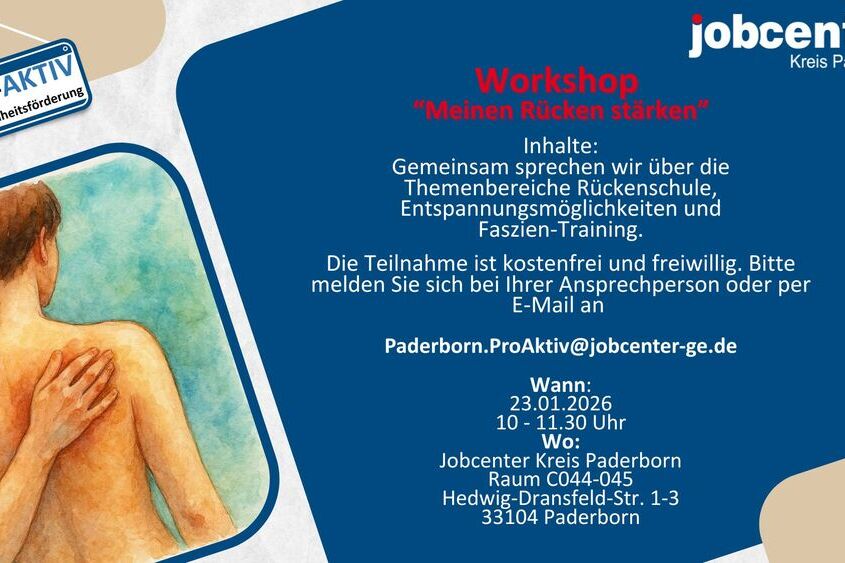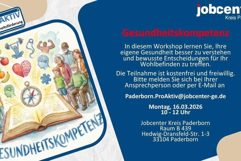 Am Montag, 16.03.2026 können Sie kostenfrei und unverbindlich am Workshop "Gesundheitskompetenz" teilnehmen.