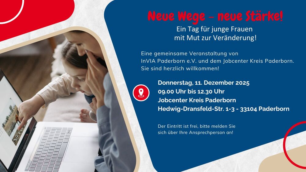 Das Jobcenter Kreis Paderborn und Invia Paderborn e.V. organisieren eine Veranstaltung für junge Frauen, die beruflich vorankommen möchten.