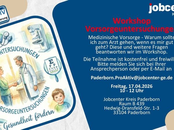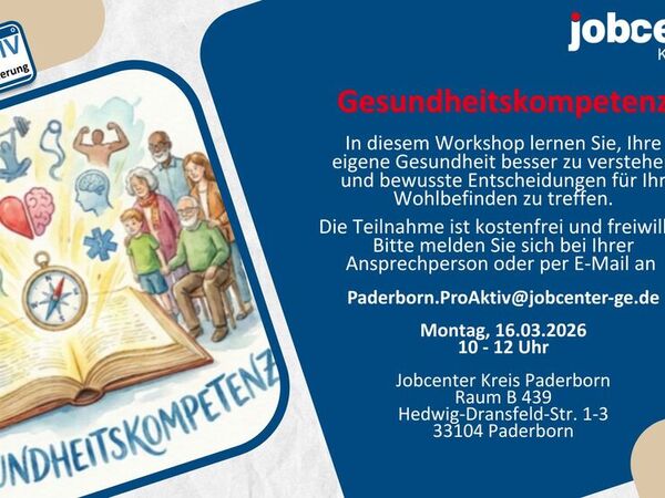 Am Montag, 16.03.2026 können Sie kostenfrei und unverbindlich am Workshop "Gesundheitskompetenz" teilnehmen.